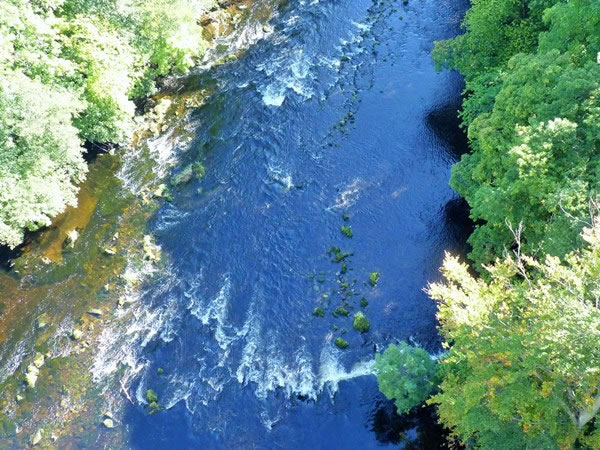 Looking down onto the River Dee, some 121 feet / 37 metres below the Pontcysyllte aqueduct.
