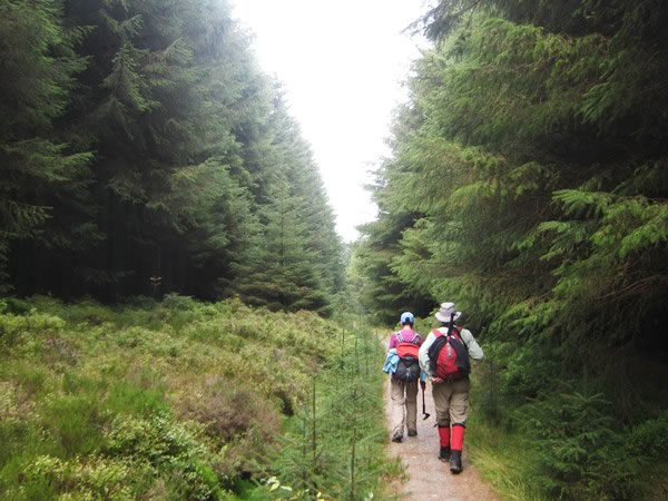 Bob took this photo of Heather and me walking through the Llandegla forest.