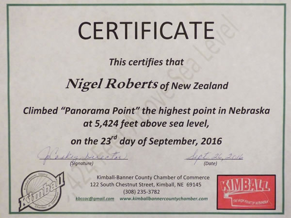 … this summit certificate. The details and information on the certificate are all correct except for the fact that I’d baulk at the word “Climbed”!