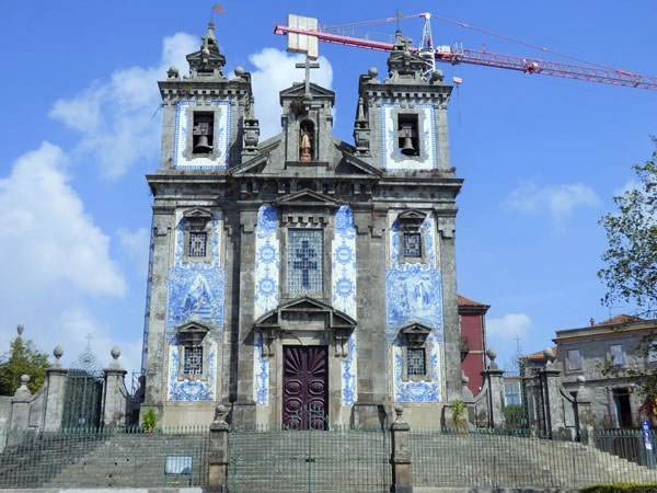 The Church of Saint Ildefonso has a tiled façade. It’s near Batalha Square, and is across the street from …