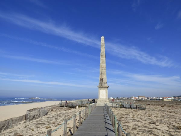 Three-and-a-half kilometres after leaving the little chapel at Matosinhos, we came across this obelisk. It commemorates the 1832 landing by King Pedro IV and his “liberal army” at the start of a civil war between Pedro and his brother Miguel. Two years later, the defeat of Miguel marked “the end of the absolutist regime that had hitherto dominated Portugal.” |