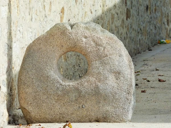 Day 3 (Friday, 29 September 2017) – Arcos to Barcelos (21.1 kilometres / 13.1 miles): Legend has it that Saint Leocádia was buried alive but used her head to drill this hole in her heavy granite tombstone which is displayed in the courtyard of a church on the outskirts of Pedra Furada. |