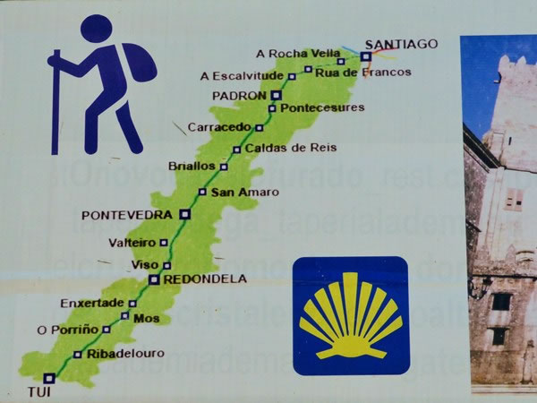 We soon came across this map of the Spanish towns and villages we’d encounter on our way to Santiago.