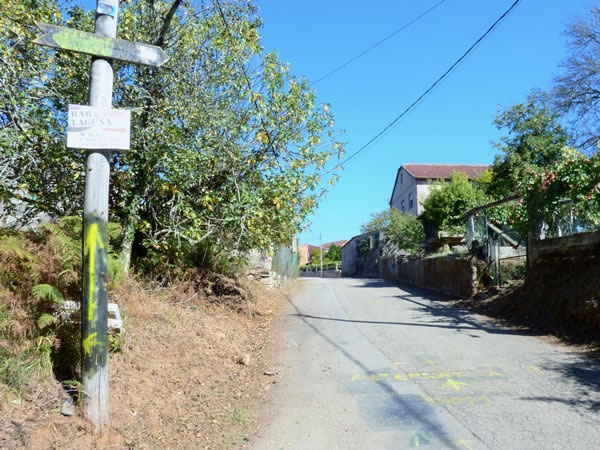 Day 8 (Wednesday, 4 October 2017) – Valença to Porriño (21.7 kilometres / 13.5 miles): … we encountered evidence of the yellow arrow wars (in which arrows have been blacked out and new ones painted by business owners who want pilgrims to keep to the original route). |