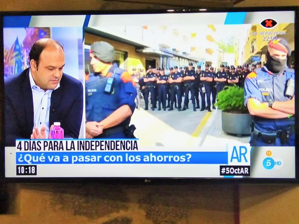 Day 9 (Thursday, 5 October 2017) – Porriño to Arcade (22.5 kilometres / 14.0 miles): When we stopped for mid-morning coffee, the café we were in – like most of those we visited in Spain – featured non-stop television news-coverage of Catalonia’s bid for independence. The headline in capital letters refers to the fact that four days had elapsed since Catalonians had voted in a Catalan-sponsored (but not Spanish government-authorised) independence referendum. |
