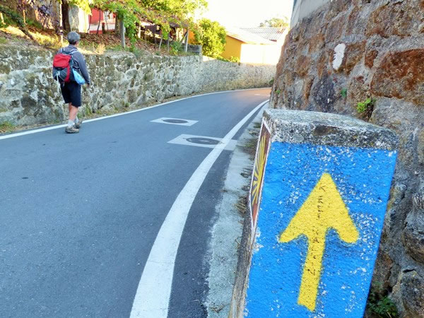 Heading up a narrow country lane. Small roads like this were more likely to have been cobbled streets in Portugal than in Spain.