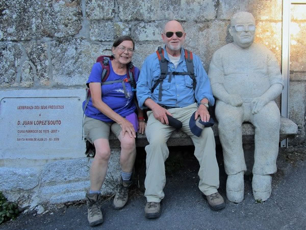 Roughly four kilometres after leaving Pontevedra, I took this photograph of Peggy, Bob, and Bob’s stony-faced twin.