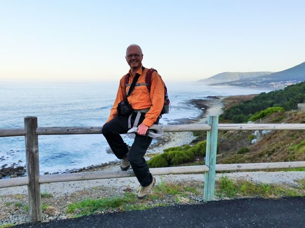 When Heather took this photograph of me at 9:45 am, the sun still hadn’t hit this section of the Galician coast.