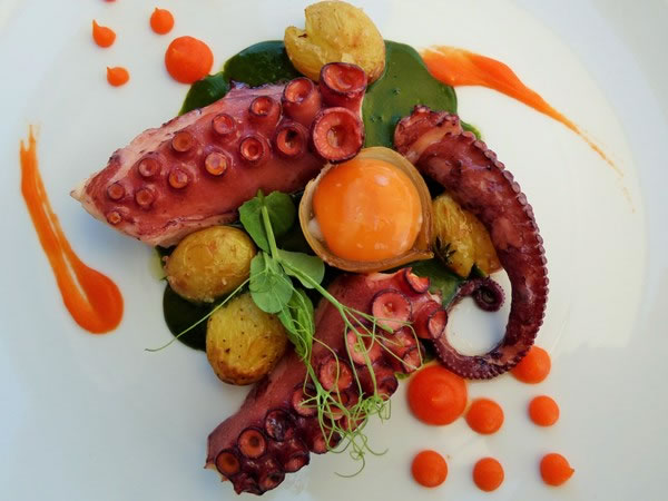 Day 21 (Tuesday, 17 October 2017) – In Porto: To celebrate the successful completion of our Caminho Português odyssey, Heather and I had lunch at a port wine cellar, and I couldn’t resist one final serving of pulpo (octopus): it was a culinary work of art. |