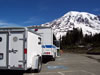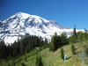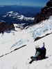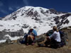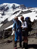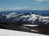 On Independence Day 2007, Eric Hodge and I reached the summit of Mt Rainier (14,411 feet / 4,392 metres), the highest mountain in the state of Washington. Mt Rainier is the fourth highest of the US state highpoints, and it's also rated the fourth hardest to climb. It was the second state highpoint that Eric Hodge had climbed, and my fifth highpoint. |