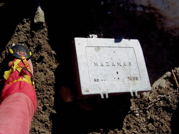 Small fumaroles five minutes’ walk below the summit keep a patch of ground free of snow, which is where a summit register is kept in a steel box provided by the Mazamas climbing club.