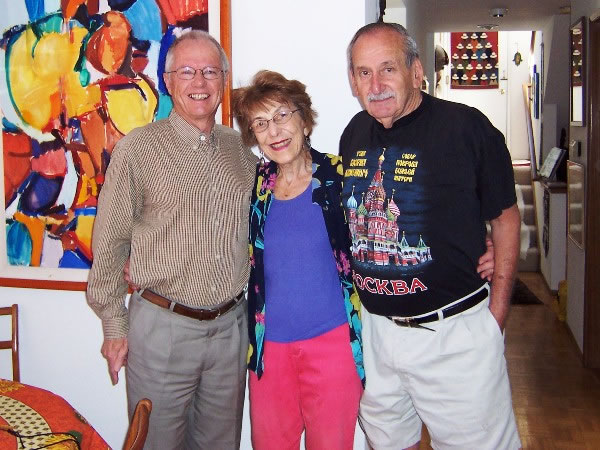 The next morning, Friday, 6 July 2007, Eric took this photo of me with Evette and Dennis Glauber. In the early 1960s, Dennis and my father had been partners in an anaesthetics practice in South Africa, where Dennis was also well-known as a radio “quiz king”. |