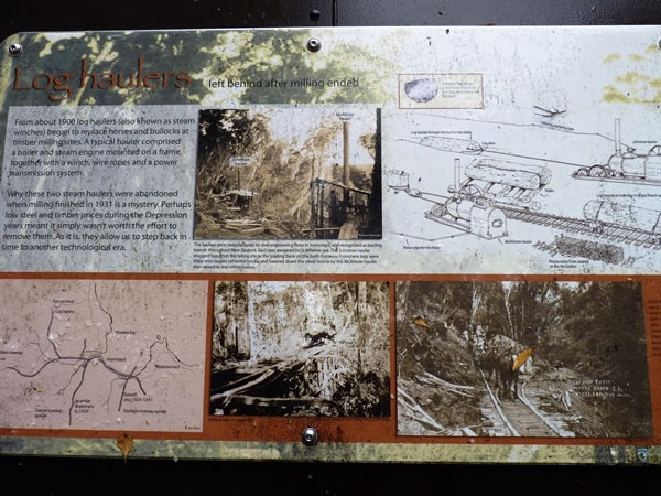 … an abandoned log hauler (or steam winch), which around 1900 began to replace bullocks and horses in timber milling areas. The log haulers were left at the site when milling ended here in 1931.