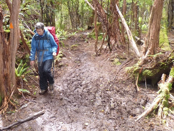 The tramping / hiking tracks on Stewart Island are famed for their mud, and even though the Rakiura Track has been (and is still being) upgraded in order to accommodate increased visitor numbers as a result of the track’s Great Walk status, there were occasional muddy patches – enough to remind you that this wasn’t merely a walk in the park. |