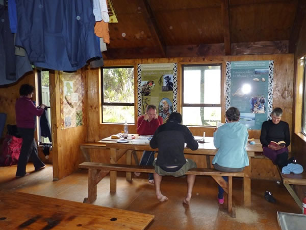 Jiff (on the right) and Heather next to her (that is, with her back to the camera) in the North Arm Hut.