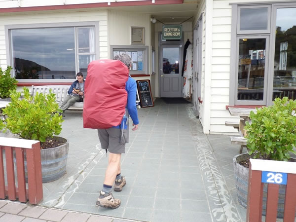 Heather walking into the South Sea Hotel …