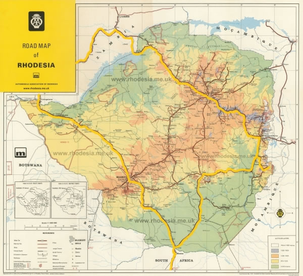 Richard Darley and I hitch-hiked north from Johannesburg to Beit Bridge, which is on the border of South Africa and Southern Rhodesia, and we then hitchhiked clockwise round Southern Rhodesia (and through a small part of Northern Rhodesia) following the route that’s marked in yellow on this map. |