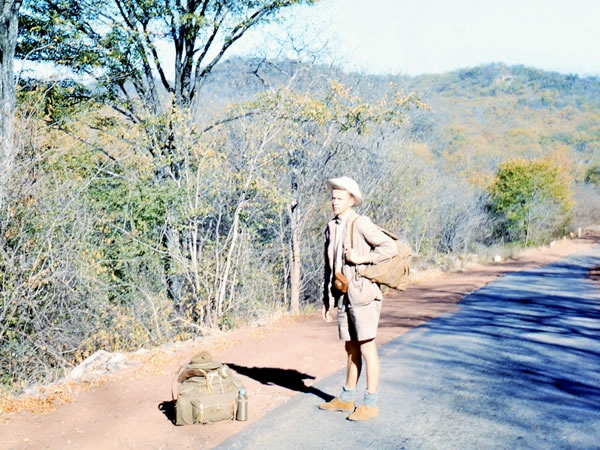 … four miles north, past another junction out of Wankie, where we stopped by the side of the road and started hitchhiking again. After a 50-minute wait, we got the first of two rides that took us through to …