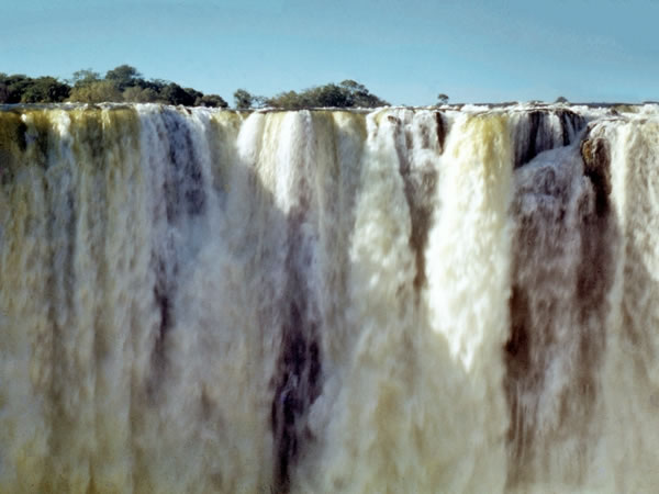 The Victoria Falls are 354 feet (108 metres) high, and more than a mile wide.