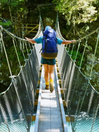 The hike starts with an immediate river crossing in order to get from the Routeburn Shelter (which is on the true right-bank of the river) onto the true left-bank of the Route Burn. “Burn” is a Scottish word for river, so the words “Route” and “burn” should really be separated. However, for some unknown reason, the track is universally known as the Routeburn (i.e., one word) Track. |