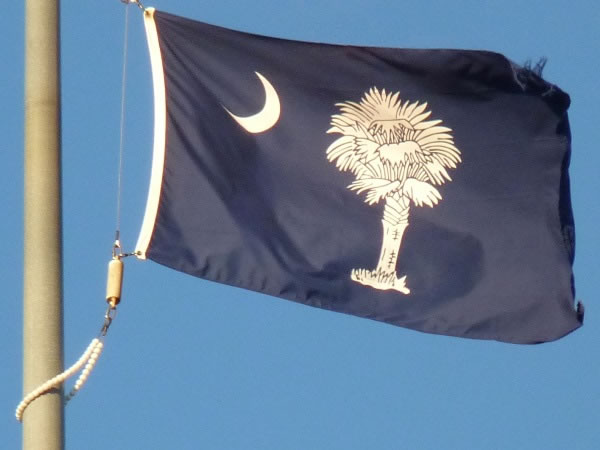 The flags of many Muslim nations feature a crescent moon (for example, the flags of Algeria, Malaysia, Pakistan, and Turkey, to name but a few). The South Carolina state flag also has a crescent moon on it, which makes it a most unusual US state flag. However, unlike the crescent moons on Islamic flags, which face out (or right), the moon on the South Carolina state flag looks left, and the main feature on the flag is a palmetto (which is a type of palm tree), reflecting the state’s nickname, ‘The Palmetto State.’ |