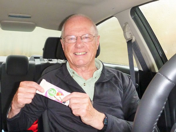Back under cover in my warm and dry rental car, I had lunch and enjoyed the last of my yoghurt-covered fruit bars originally bought in Wales for sustenance while hiking Offa’s Dyke Path the previous month!