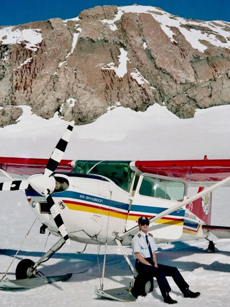 The pilot of the small ski-equipped plane on which Gerry Kennedy and I flew from near Kelman Hut, down the Tasman glacier, to the southern edge of the Aoraki / Mt Cook National Park. We landed on the Sladden glacier near Mt Massey.