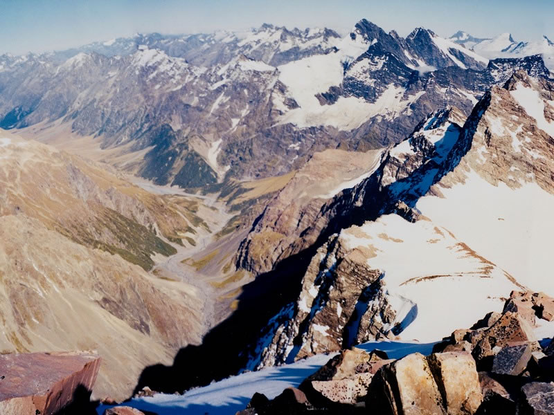 Looking south and down from the summit of Mt Sealy onto streams which, I think, are tributaries of the Dobson river.