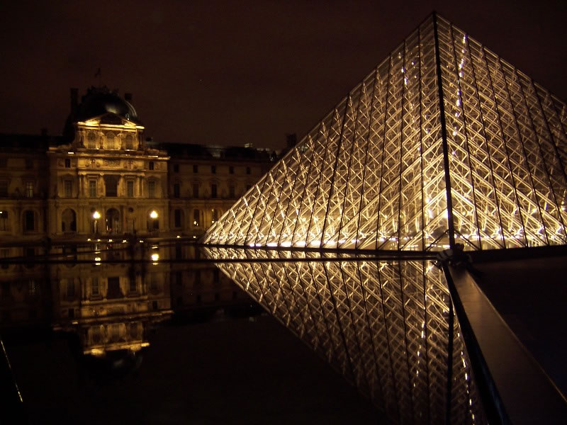 Architecture / buildings – France: The Louvre Pyramid was designed by the Chinese-American architect, I. M. Pei, and completed in 1989. The pyramid, which is surrounded by three smaller pyramids, is the principal entrance to the Louvre, which is one of the world’s pre-eminent art museums. I took this photograph on 24 September 2006. |
