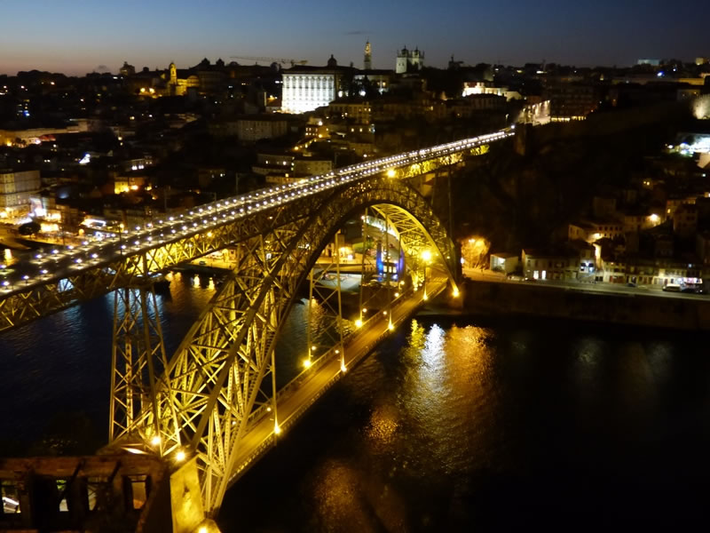 Architecture / buildings – Portugal: Looking down onto the Dom Luis I bridge and across the Douro river towards Porto. The bridge (which was completed in 1886) was designed by Theophile Seyrig, one of Gustave Eiffel’s business partners. I took this photograph on 25 September 2017. |