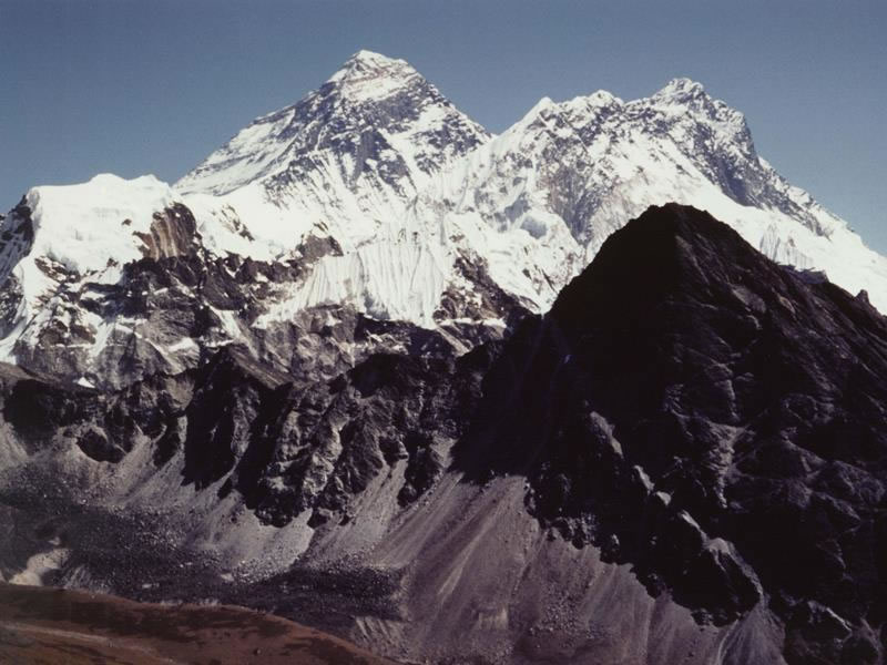 Mt Everest – the world’s highest mountain (8,848 m / 29,031 ft) – photographed from the summit of Gokyo Ri on 18 October 1991.