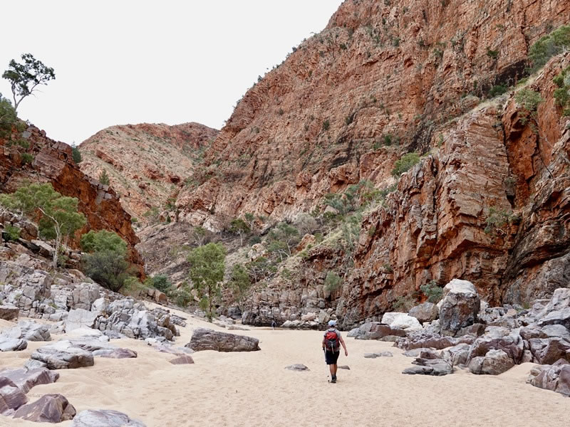 Heather walking through the Ormiston Gorge while we were hiking portions of the Larapinta Trail in central Australia. I took this photograph on 28 April 2023.