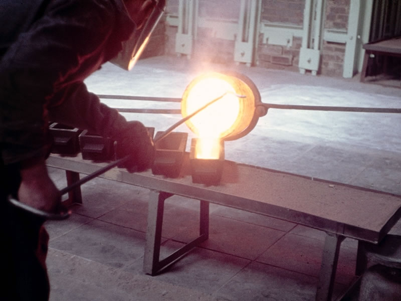 Pouring a crucible of molten gold into an ingot. The resultant gold brick weighed 11 kilograms and would nowadays be worth more than $NZ850,000. I took this photograph in July 1962.