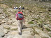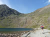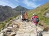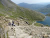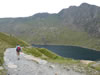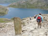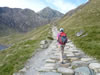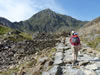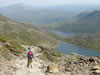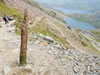 On Friday morning, 11 September 2015, Heather and I set out to climb Snowdon / Yr Wyddfa (1,085 metres / 3,560 feet), the highest mountain in Wales. Heather decided to stop when we reached the ridge separating Snowdon and Garnedd Ugain (the second-highest peak in Wales), but I continued the hike to the summit of Snowdon and reached it twelve minutes later. |