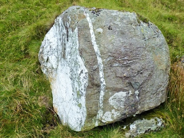 … this is possibly a volcanic boulder cut by a couple of quartz veins.