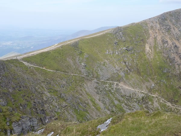 Looking back at the track we’d climbed up to reach Bwich Glas, I could clearly see …