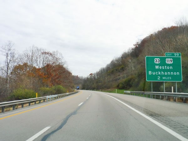 I left the I-79 at exit 99, in order to drive east (through Buckhannon) on US federal highway 33.
