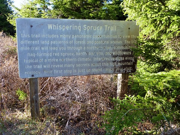 This sign, advertising the Whispering Spruce Trail, is near the foot of the observation tower, so I decided to follow the trail.