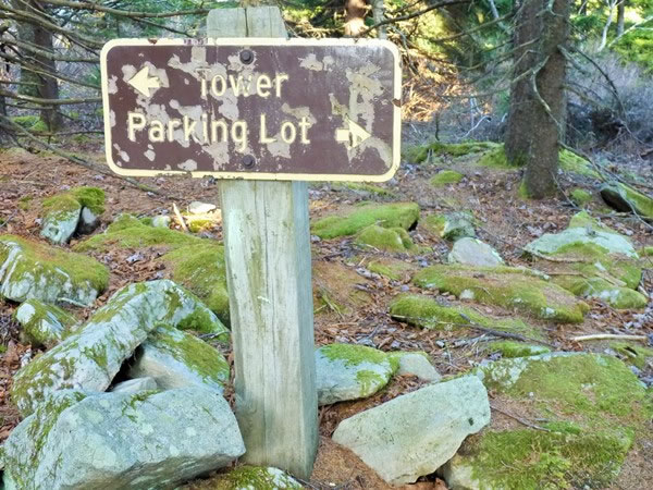 This sign is near the viewing platform. I continued hiking along the Whispering Spruce Trail and, as a result, headed towards the parking lot.