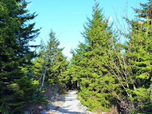 Looking north along the Whispering Spruce Trail.