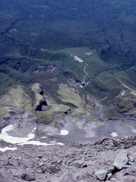 The East Ridge of Mt Taranaki was definitely getting steeper as this photo looking back down the mountain shows.
