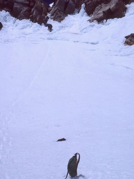 After we’d reached the foot of the Shark’s Tooth, we had to clamber through a gap in the rocks and then slide down this snow slope and onto the crater floor. It was the only part of the whole climb that Evan found slightly unnerving.