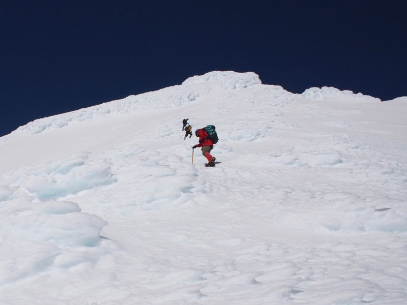 In this photo (also by Steve), I’m making my way cautiously through fields of rime ice. Above me are Jayden Hill (who had joined us at the hut the previous evening well after we’d arrived) and Rob.