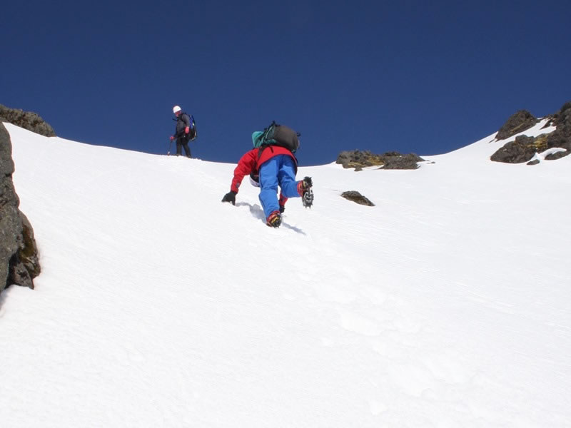 Steve took this photo of me front-pointing my way down the slope we’d just climbed, but after a while I decided that front-pointing was both unnecessary and too much effort, so …