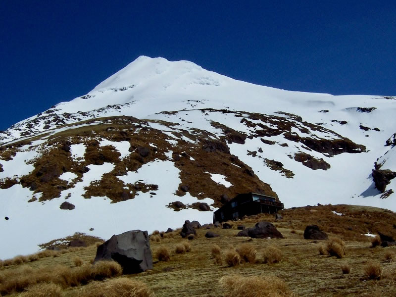 Looking back up at the Tahurangi Lodge and Mt Taranaki, it was literally a blue-sky day.