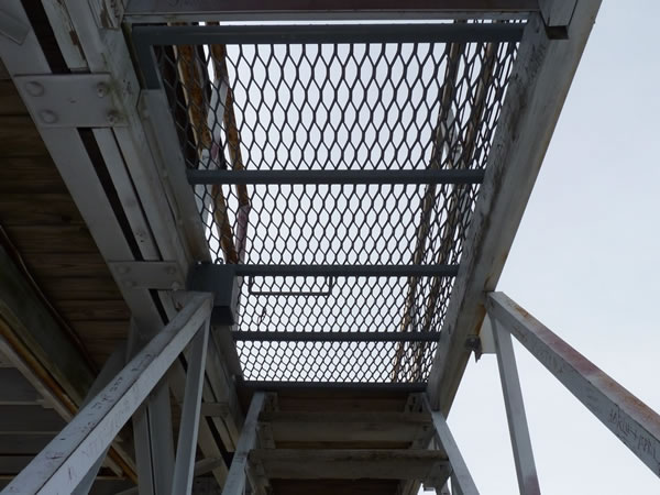 Access to the uppermost platform on the lookout tower was blocked by a locked steel grill.