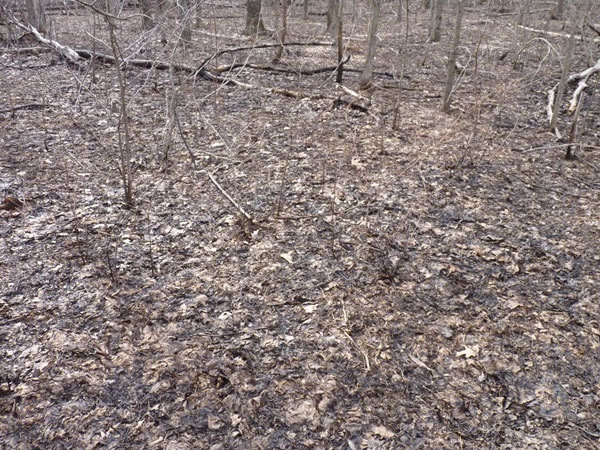 The bushes and undergrowth on both sides of the trail to the highpoint had recently been burnt.