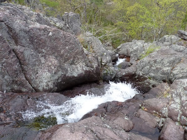 Looking down the tallest portion of the Mina Sauk Falls and into the valley that’s below the falls. The Mina Sauk Falls are the highest in Missouri – but they don’t flow all the time; they only flow during or after wet weather.