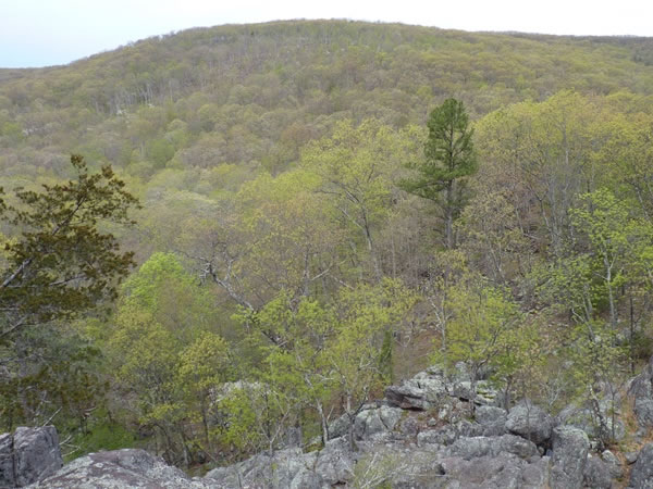 Looking west across the hills of Missouri from the Mina Sauk Falls.