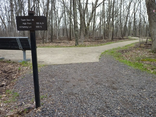 At 11:55 am I was back at the junction where the path to the right heads off to the top of Taum Sauk Mountain, which is visible 130 feet / 40 metres away.